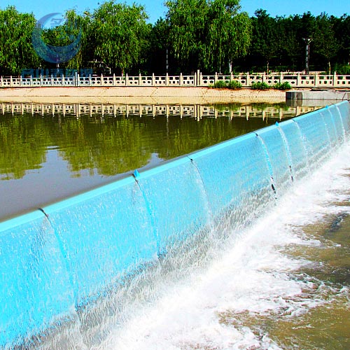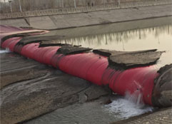 橡膠壩使用壽命短(橡膠壩采用的是再生橡膠原料,壩袋易老化,容易被上游漂浮物或尖銳物損壞,從而降低使用壽命);運(yùn)行管理難度大(洪水過(guò)后一旦壩面淤積較厚,要求人工清理,否則壩袋不能正常升起蓄水,增加了后期的人工費(fèi)用)。充水式橡膠壩冬季冰凍容易損壞壩袋,而充氣式橡膠壩不能調(diào)節(jié)壩高。